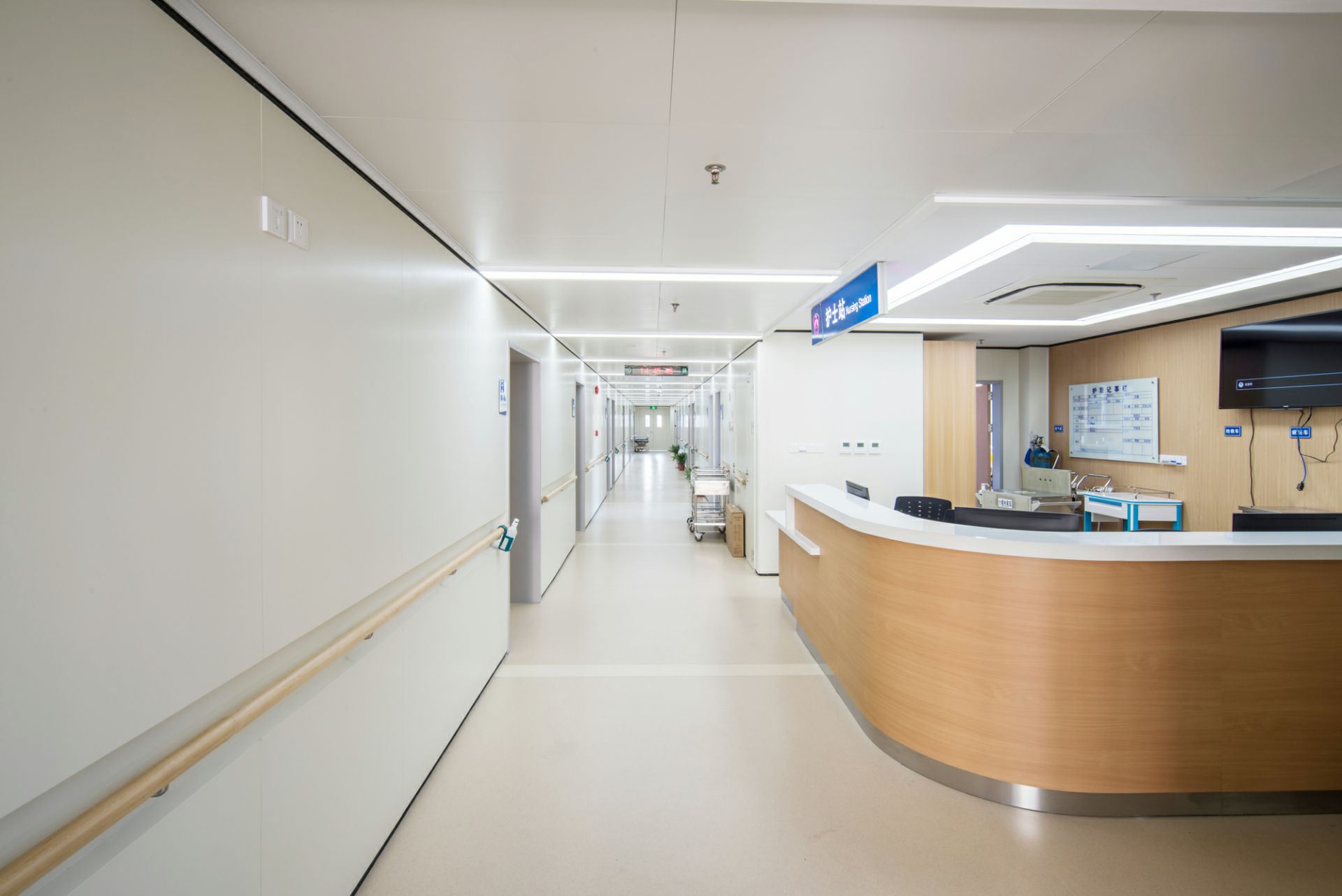 昆明伟泽绿色新能源有限公司为东南医院旧楼改造中提供医疗用门整体解决方案,其中包含甲级双开防火门、金属木纹墙板、金属木纹门、手动移门、金属吊顶等。打造高品质人性化的医疗空间。