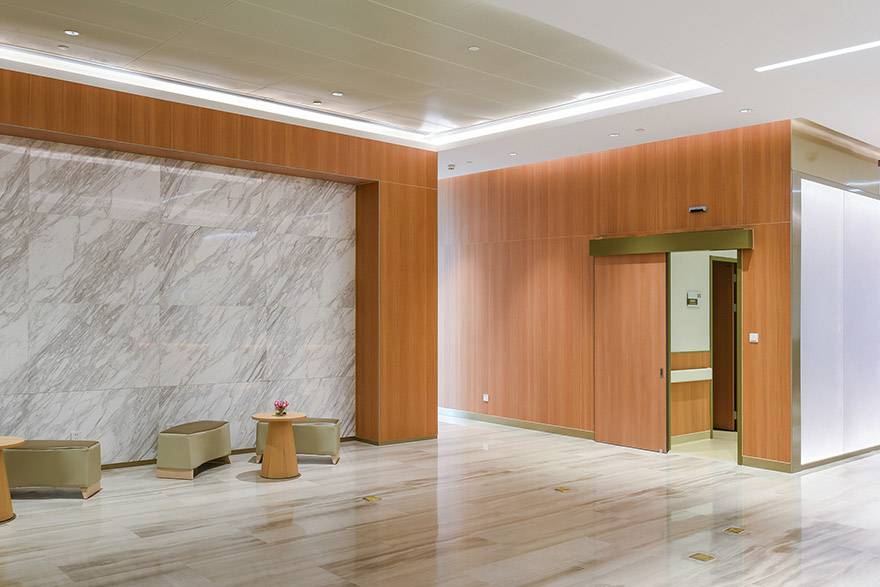 昆明伟泽绿色新能源有限公司采用进口免漆木纹饰面,具有极强的仿真效果,持久耐磨,满足医疗环境的耐久性、抗菌性和环保性。在多家医院的应用中得到业主良好的反馈。